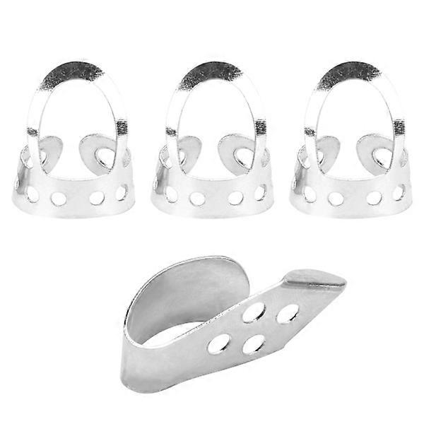 Finger Plectrum Metal Adjustable Hollow 3pcs Index Finger 1pc Thumb Banjo Guitar Ukulele Parts (Silver) - Musical Instrument Accessory