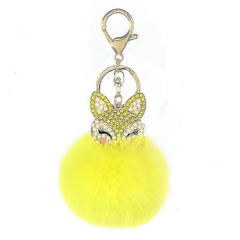 Faux Rabbit Fur Fluffy Keychain Fashion Fox Head Alloy Keychain Sparkly Rhinestone Handbag Backpack Car Keychain-pink-deep Pink