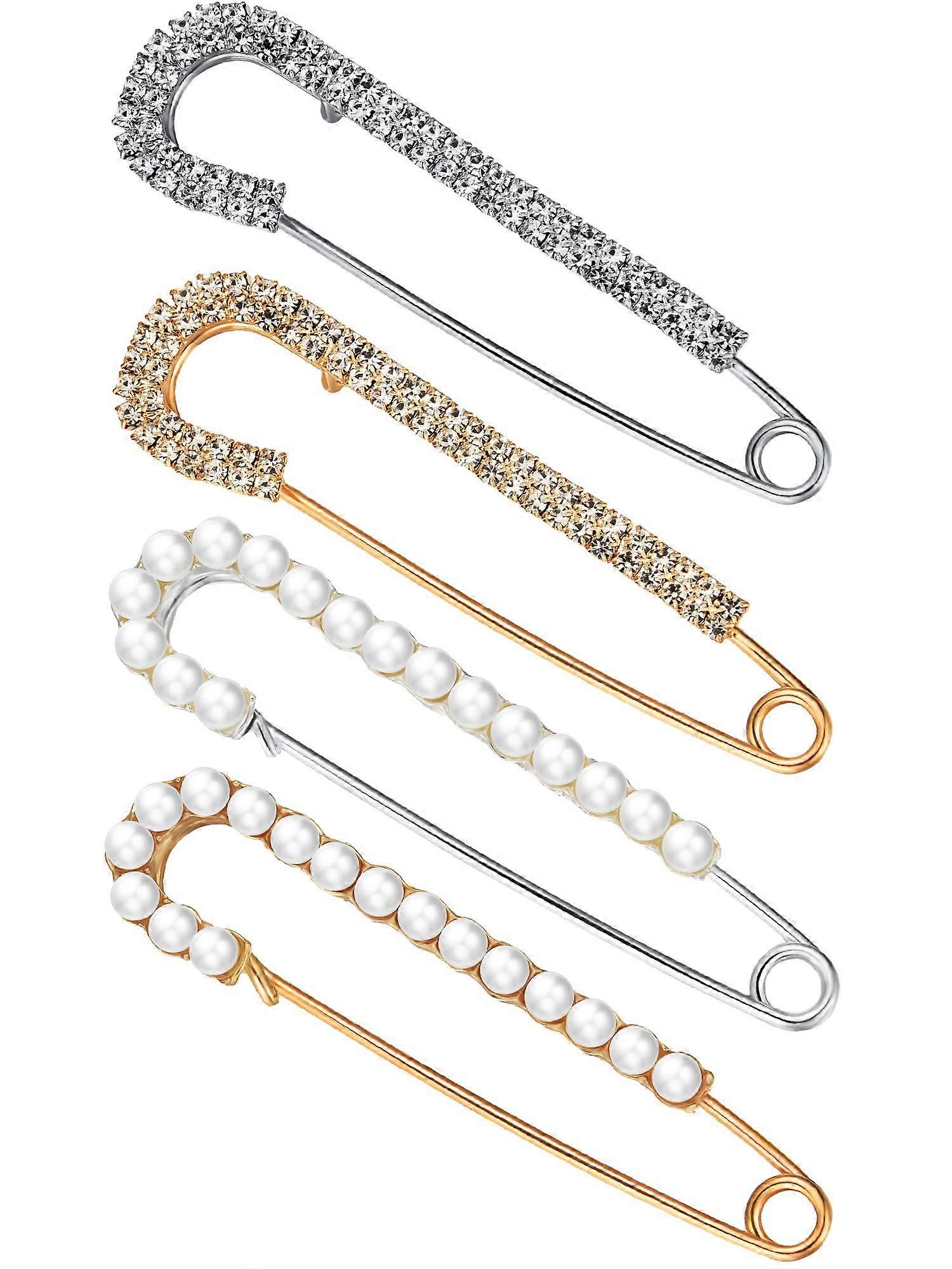 Faux Crystal Pearl Brooch Pins Set of 4 Dress Shirt Clips for Women Elegant Accessories and Formal Wear