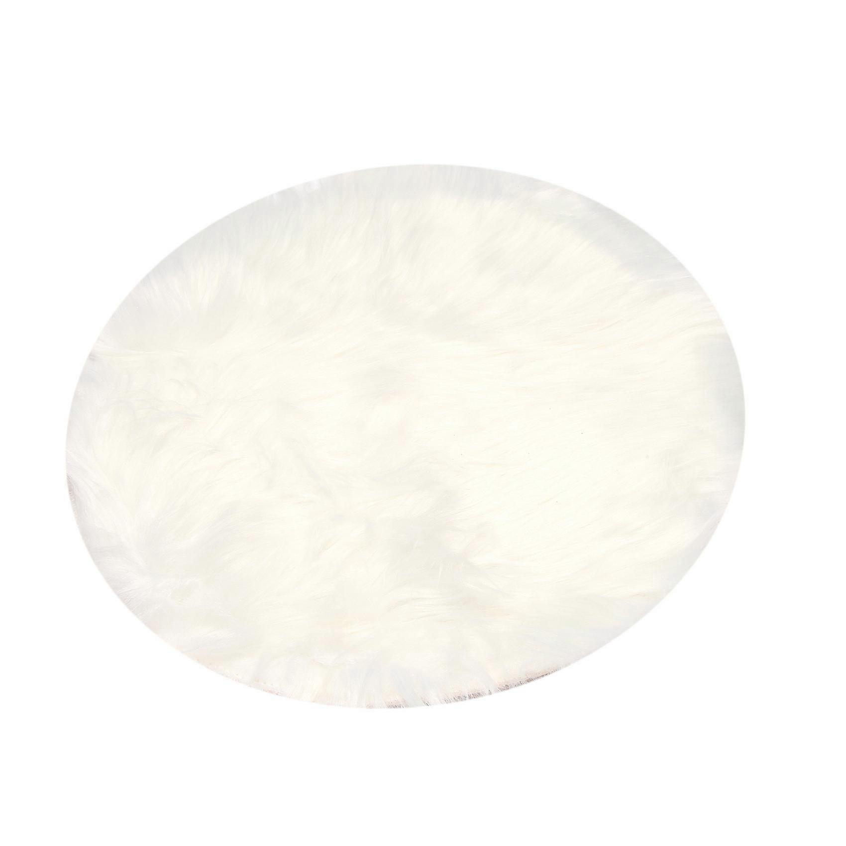 faux sheepskin wool carpet 30 x 30 cm soft longhair decorative carpet cushion Chair sofa mat (Round White)