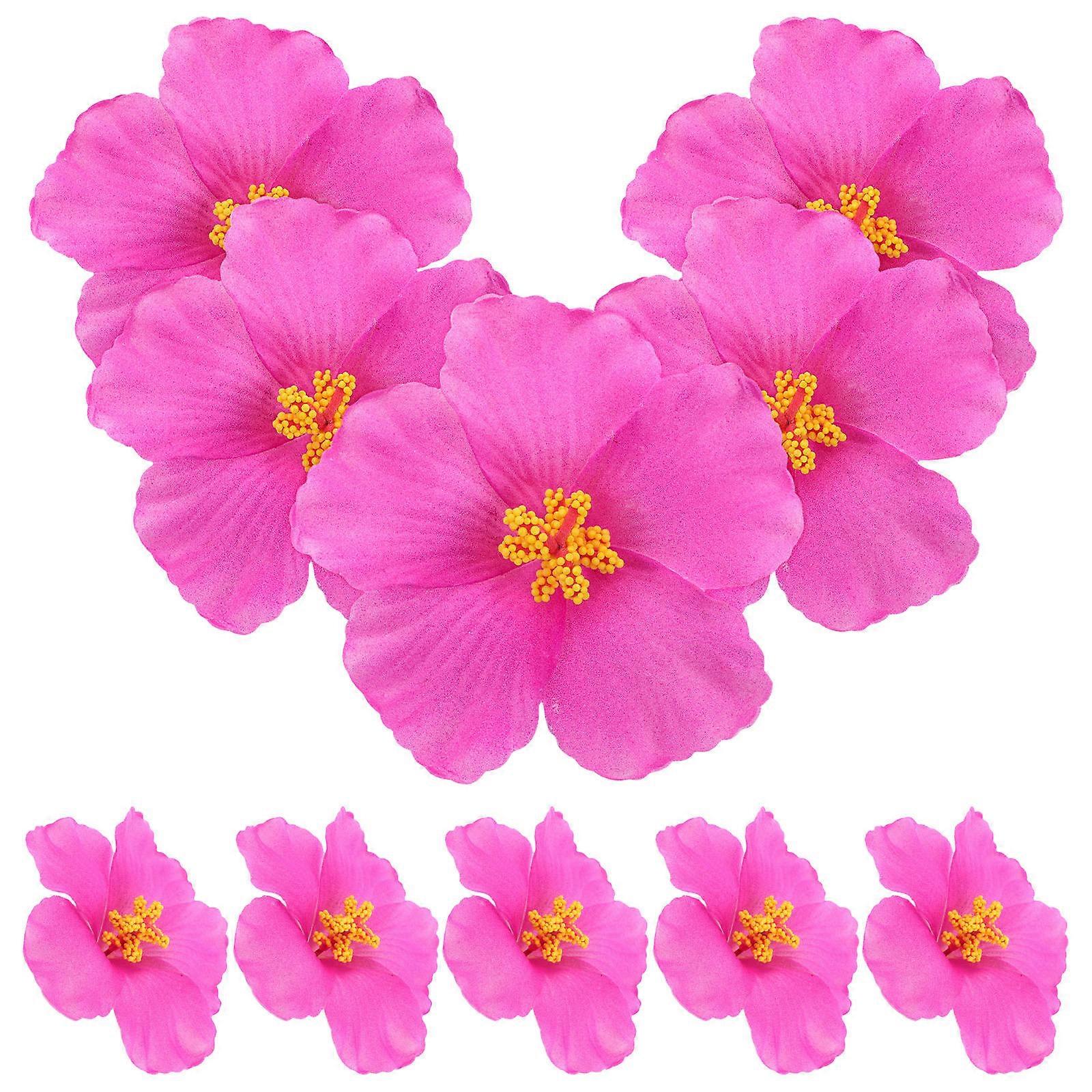 Fake Tropical Flowers Rosy Hibiscus Shape For Summer Events 10Pcs