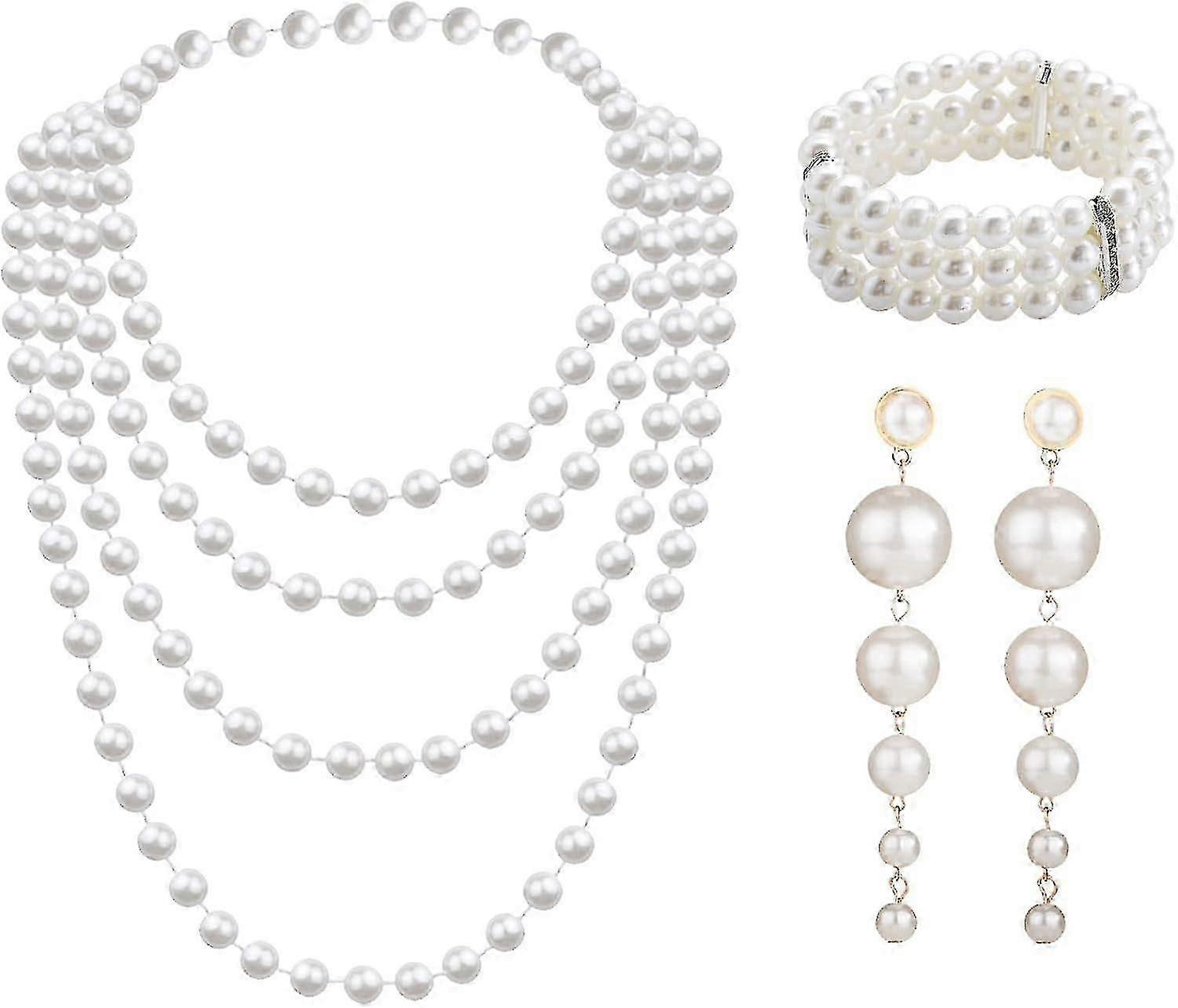 Faux Pearl Jewelry Set (3 Pcs) Elegant 1920s Accessories