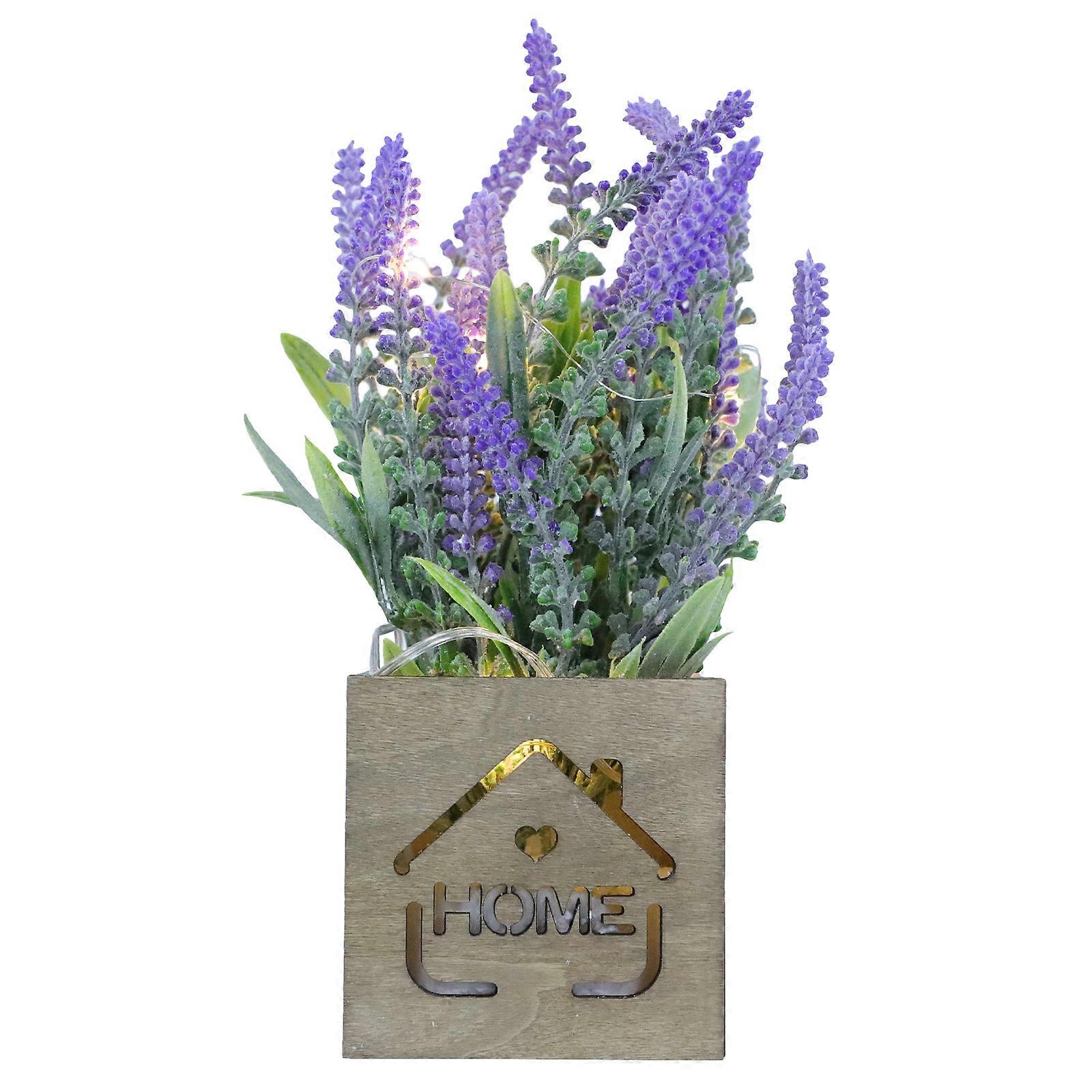 Faux Plants Luminous Wood Box Lamp Housewarming Decoration 23x12cm Violet Stylish 1Pcs
