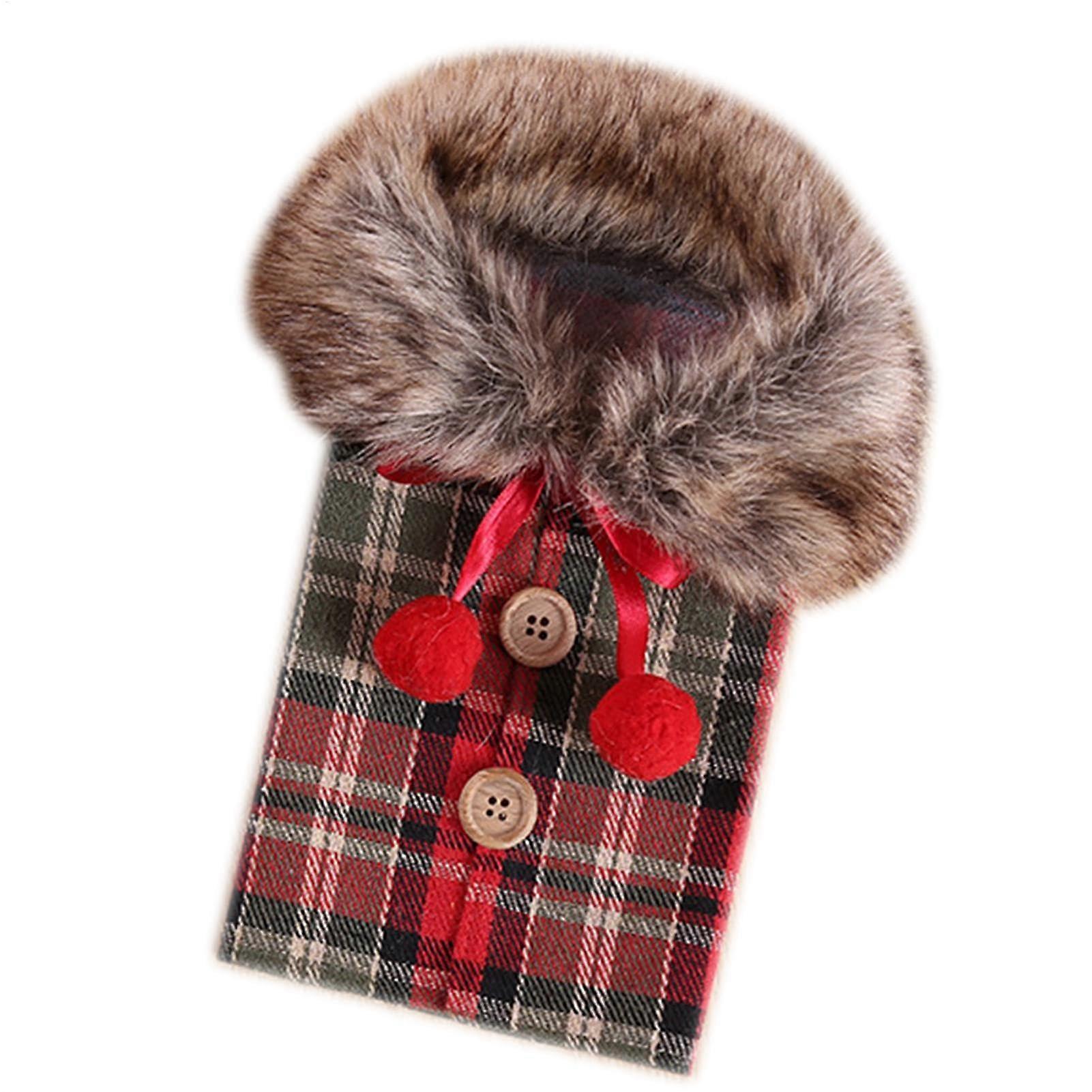 2pcs Christmas Wine Bottle Covers with Faux Fur Collar and Buttons, Decorative Wine Bottle Sweater for Christmas, Creative Gifts for Men and Women Red