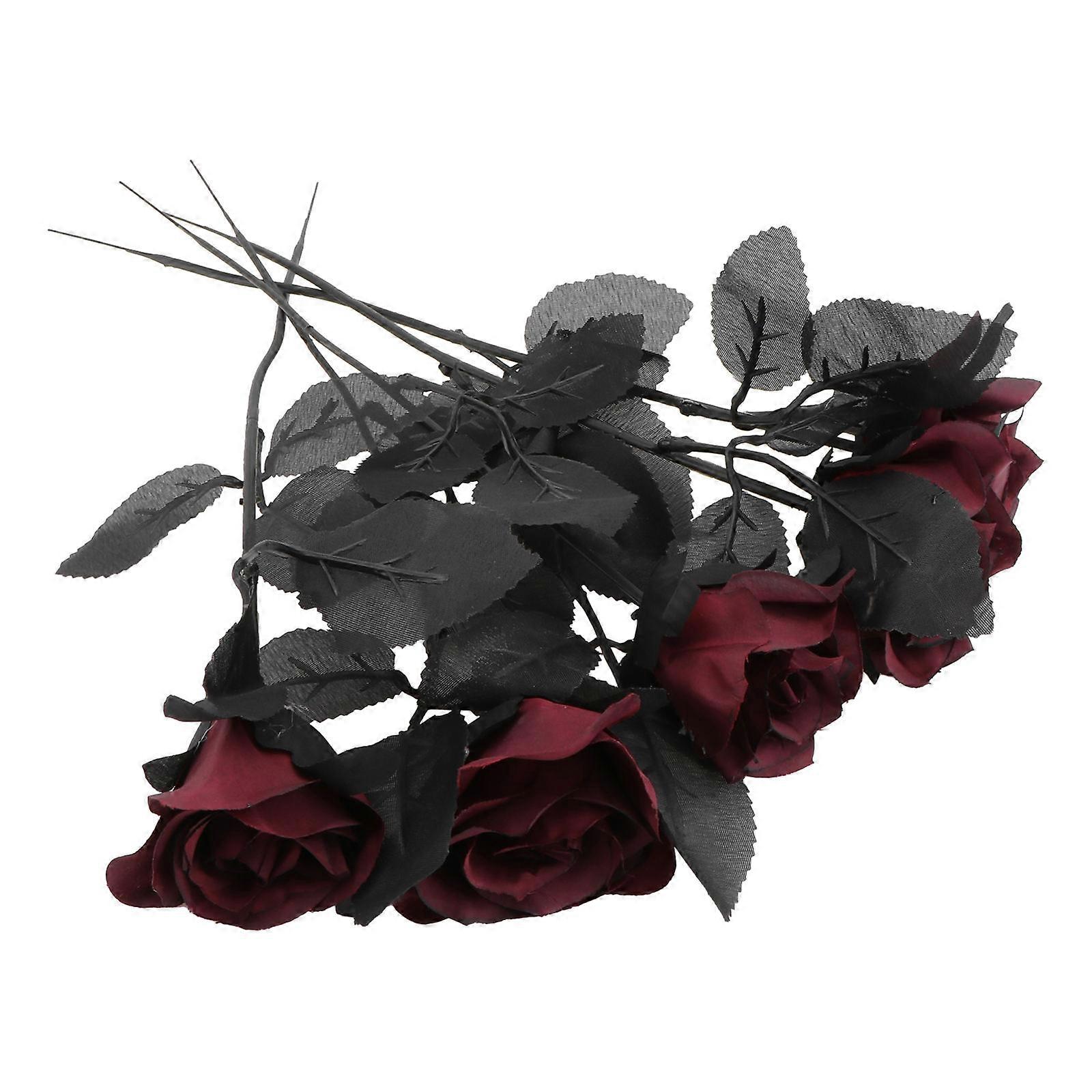Faux Floral Flower Decoration Valentine's Day Dark Red 39x8CM Plastic Material 5Pcs