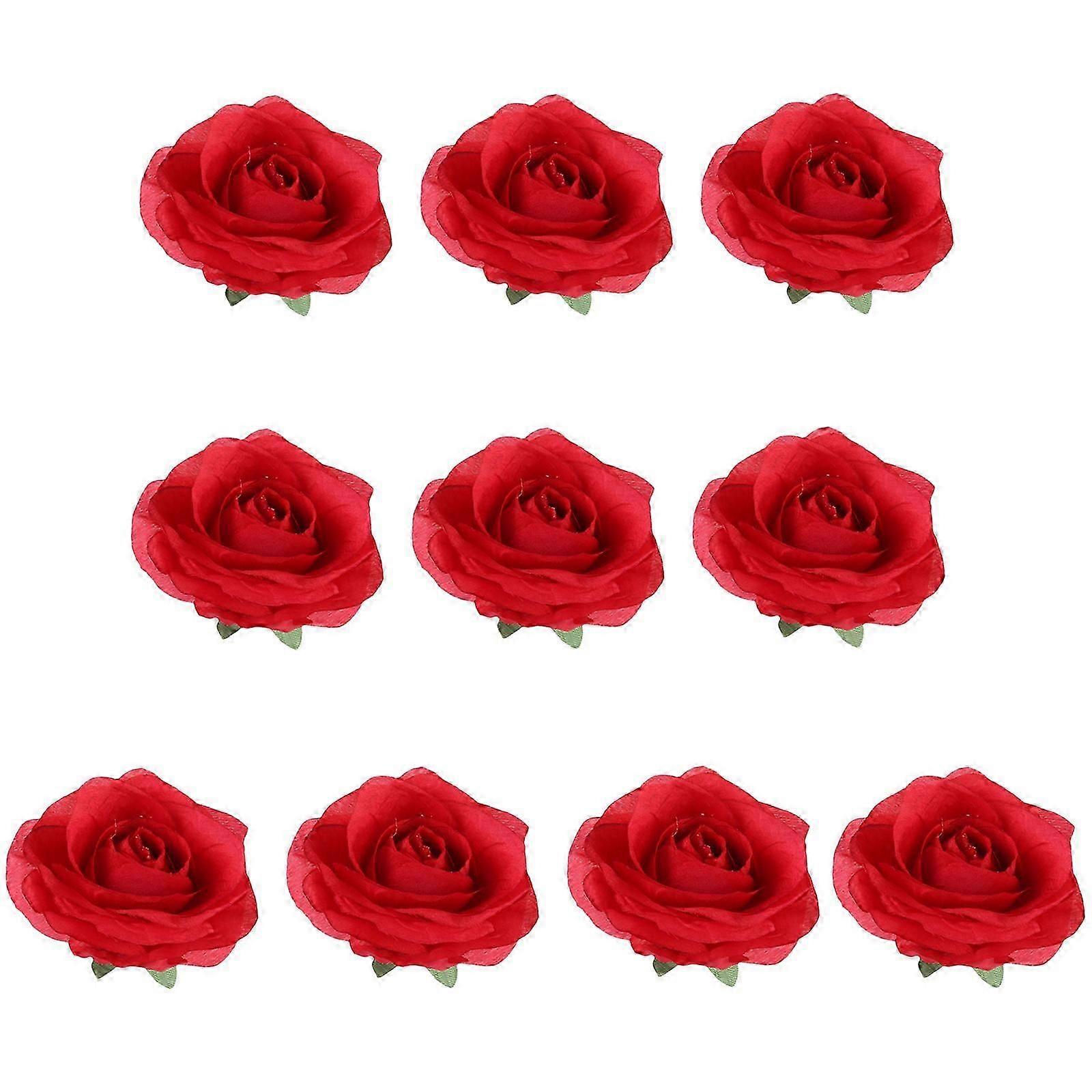 Faux Flower Rose Decoration Valentine's Day Decoration Red 9cm Silk Cloth 10Pcs