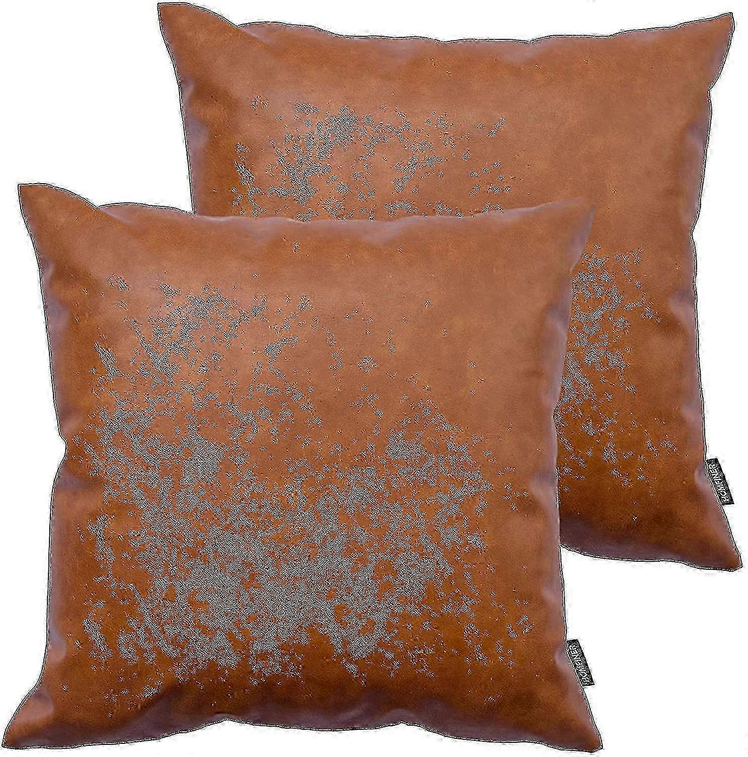 Faux Leather Throw Pillow Covers, 18 X 18 Inch Set Of 2 Thick Cognac Brown Modern Solid Decorative Square Bedroom Living Room Cushion Cases