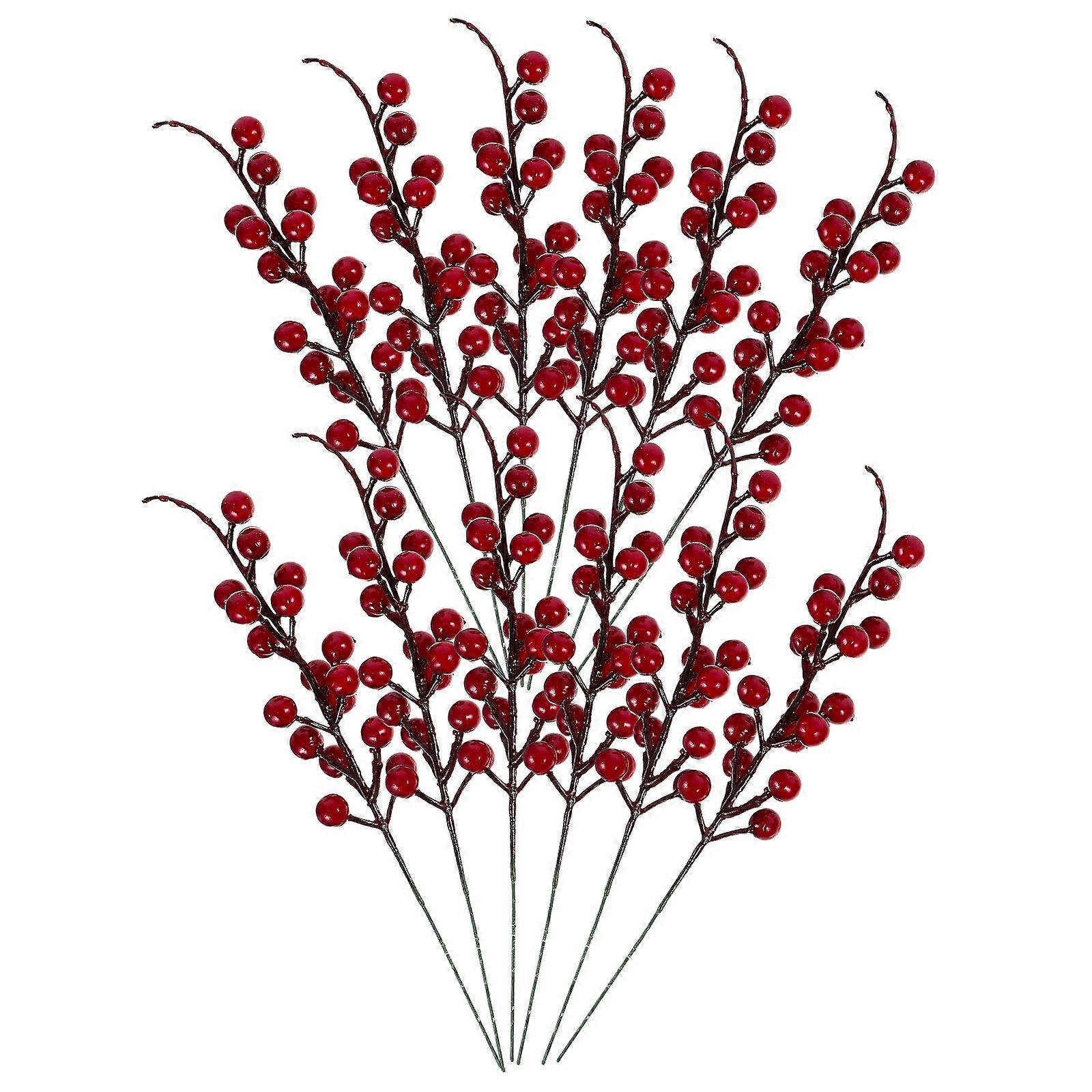 Faux Red Berries Stems 24X4.5X3.8CM Christmas Home Decor For Craft Enthusiasts 12Pcs