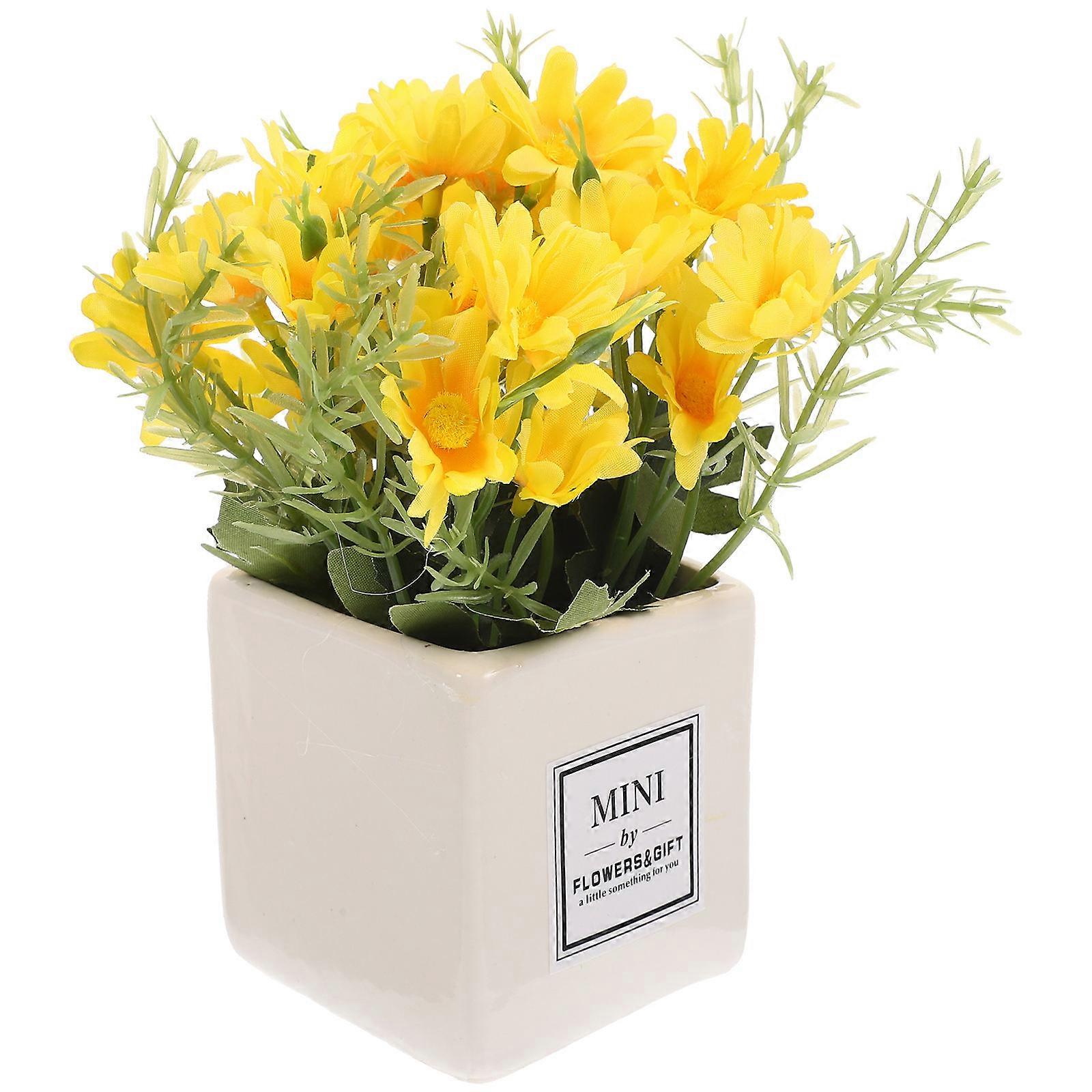 Faux Bonsai Artificial Flower Yellow Mini Decorative Plant Indoor Decoration 7.5x7.5x17.5cm No Watering Required 1Pcs