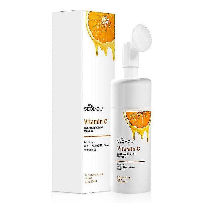 Facial Cleansing Mousse with Silicone Massage Brush 150 ml, Makeup Remover for Face and Eyes, Vitamin C and Hyaluronic Acid, Cleansing and Invigoratin