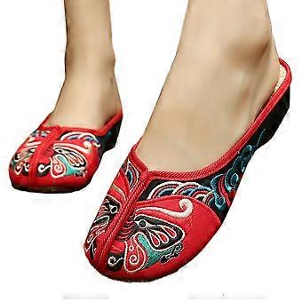 It doesn't pursue fashion but is unique;wear individual grade,conveny inner literary and freshness.Its vintage and fashionable emboridery and small peony and China flower pattern,black is sober and red is ardent;symmetric edge design shows art and vintage;classic plate button design weaves unique smell. Delicate embroidery,colorful string overlap,juxtapose and intervain produces flamboyant but not vulgar color effect;the blent color of dark and light has Chinese painting's render effect;it uses top grade material,color is staid and simple,like go through time's baptism,showing perfect literary smell;it comforms to human engineering,it is comfortable and protects the feet. Wearing it is like going through thousand years time,eyesight like wave,smile like flower,moving step like lotus. Features: pure natural canvas,with little stimulus to the skin,abosorbs sweat and ventilate,is soft and close to the skin,super ventilated and super refreshingsoft inner design,classic superior linen material,ventilate and is close to the skinvintage shoelace,elegant,beautiful and decentcotton string embroidery,perfect and delicatecowhell shoe sole,anti-skidding and comfortable,wear ressitant and durable Specifications: vamp material: meshinner material: gaugesole material:TPR(cowhells) toe cap type:round sole type: flatfashionable element: low-cutcolor: redsize:35,36,37,38,39,40, 41weight:350g