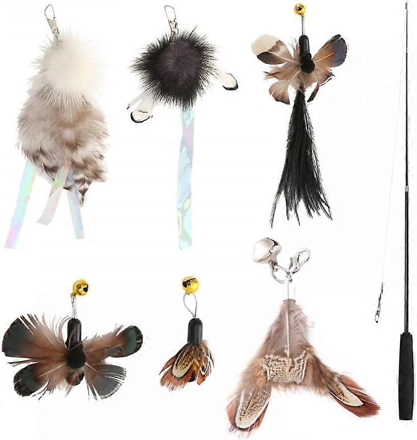 Feather Cat Toy Set, 38.2" Retractable Cat Fishing Replacement Toy with Bells for Kittens Cats