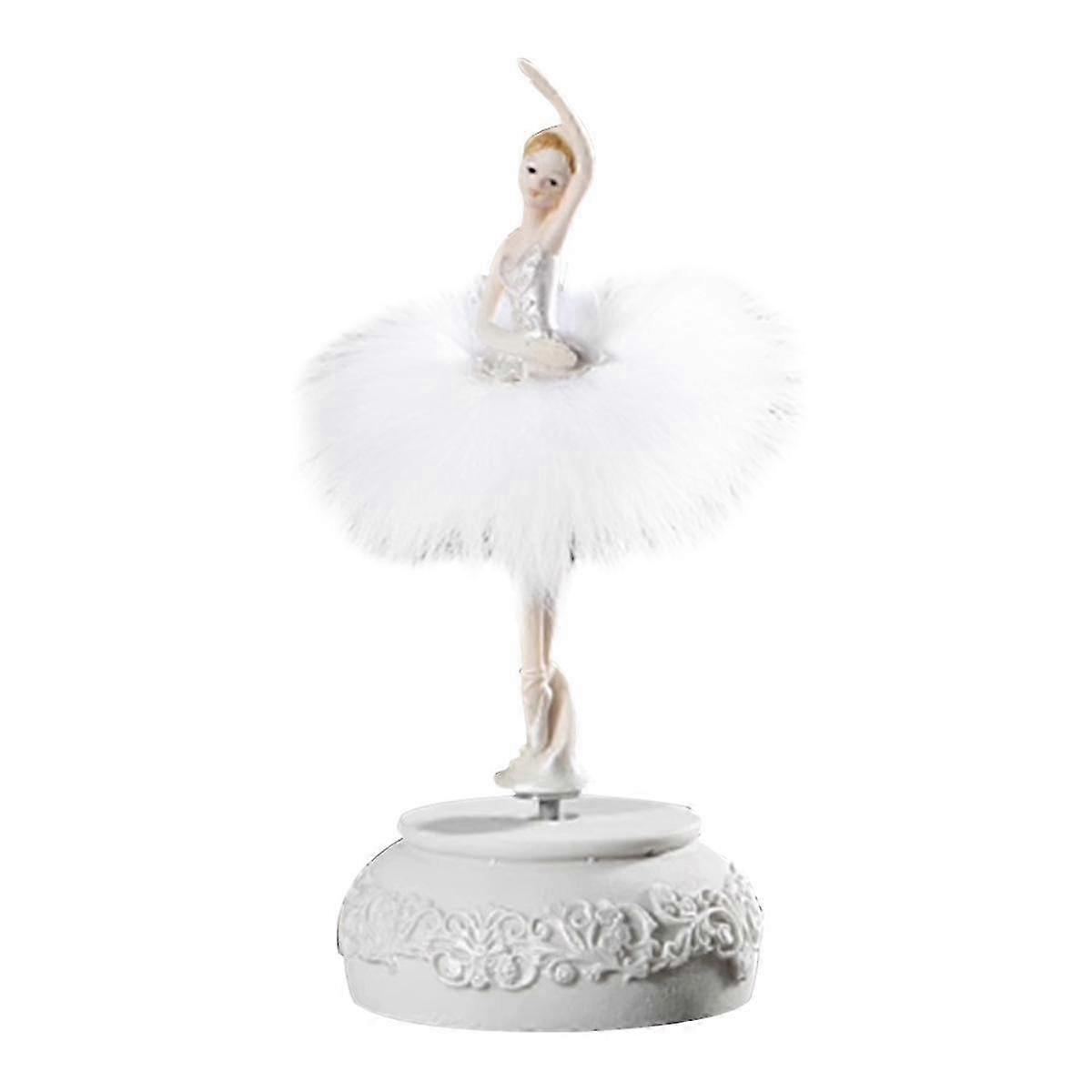 Feather Skirt Rotating Music Box Figurine, Manual Control Dancing Girl Musical Box For Girls, White
