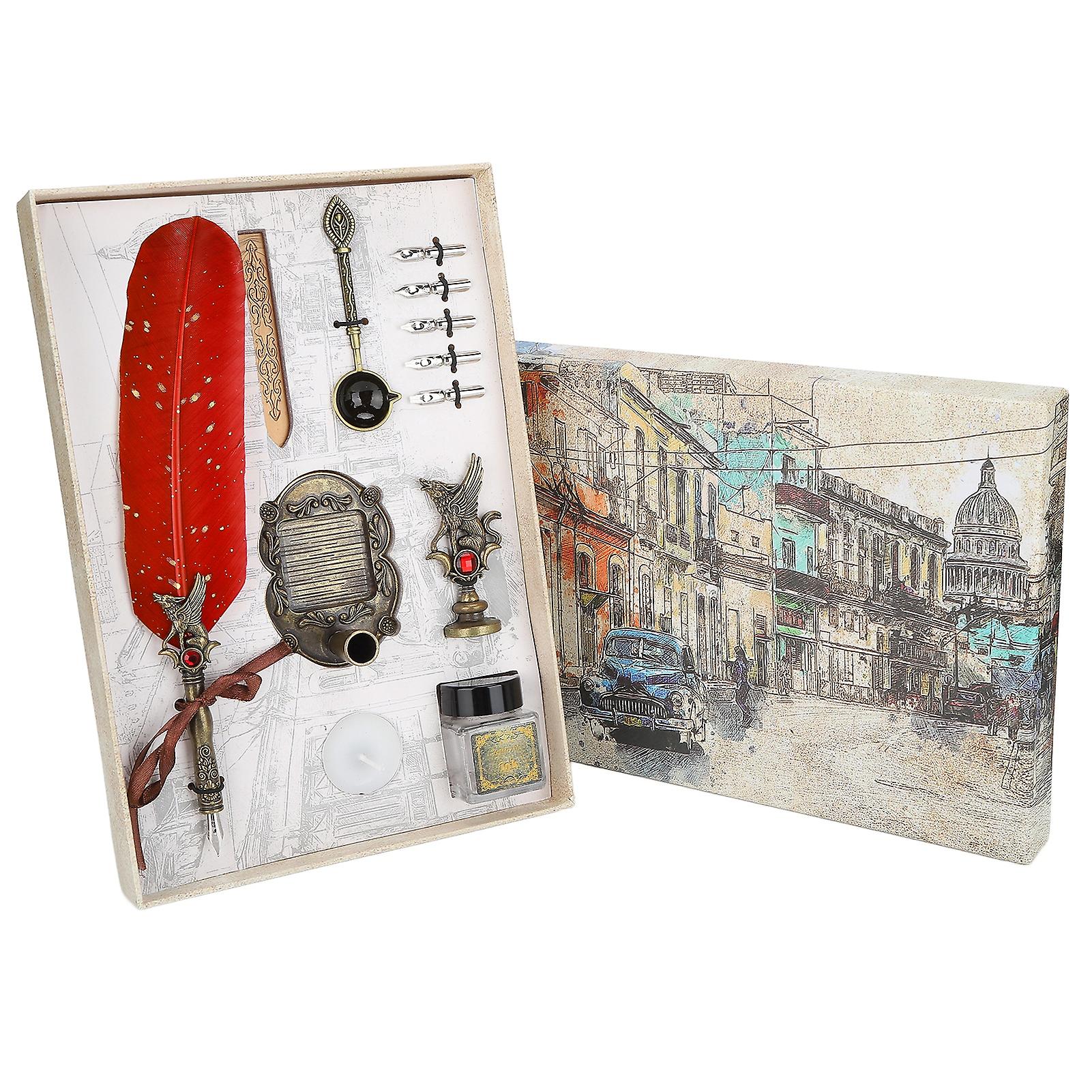 Feather Pen Set Retro Classical Style Dip Water Calligraphy Pen Feather Pen Set Holiday Gift