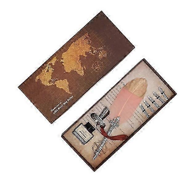 Feather Pen Set - Durable Creative Writing Stationery Gift Box for Lovers, Teachers, Classmates - Gold, Dirty Powder