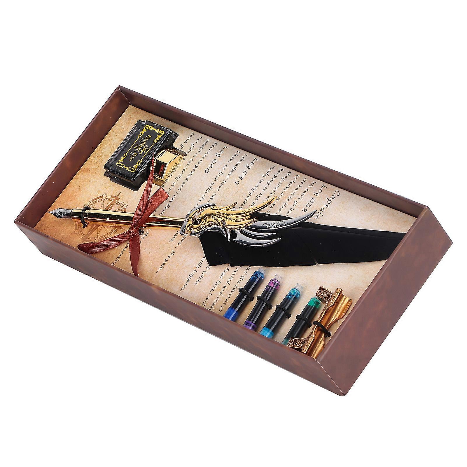 Feather Pen Calligraphy Writing Vintage Set Metal Retro Dip Quill Kit with Ink Sac SP270