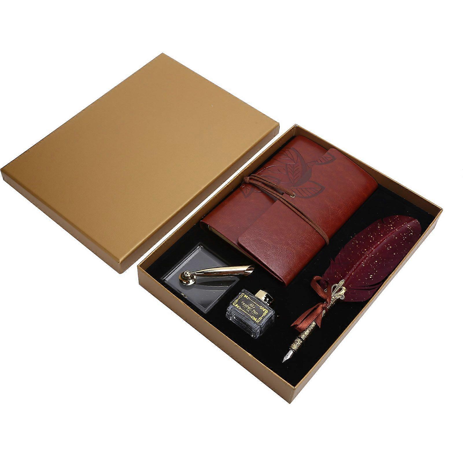 Feather Writing Pen Set Vinage Calligraphy Drawing Quill Dip Kit Art Craft SuppliesSP236906 Sprinkled Gold Wine Red (gold box)