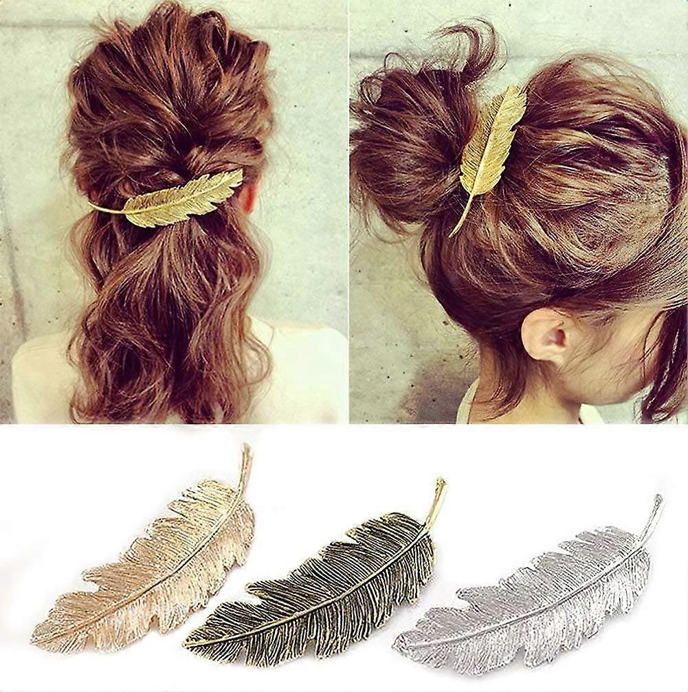 Feather Leaf Design Decorative Hair Clips, Non-slip Holds Hair Firmly, Vintage Alloy Luxury Jewelry For Special Occasions And Daily Wear