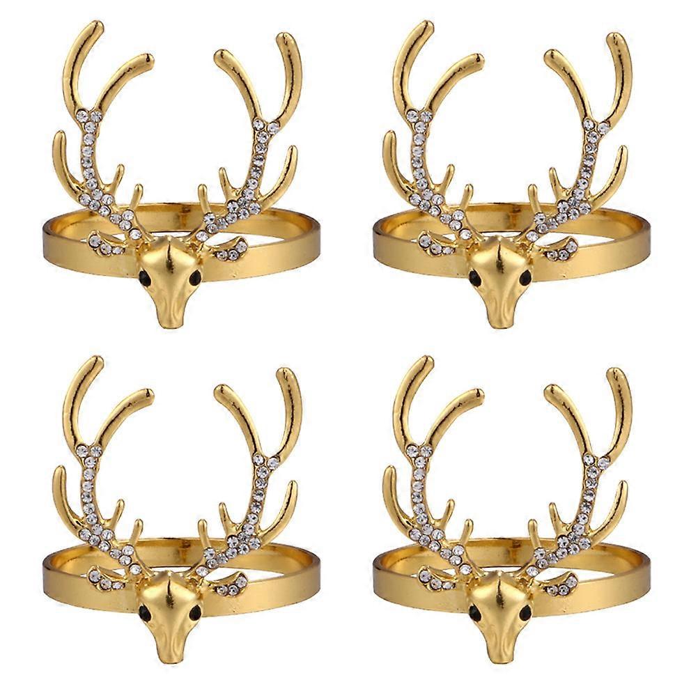 Festival Napkin Ring Reindeer Dining Table Hosts Golden Alloy 4Pcs