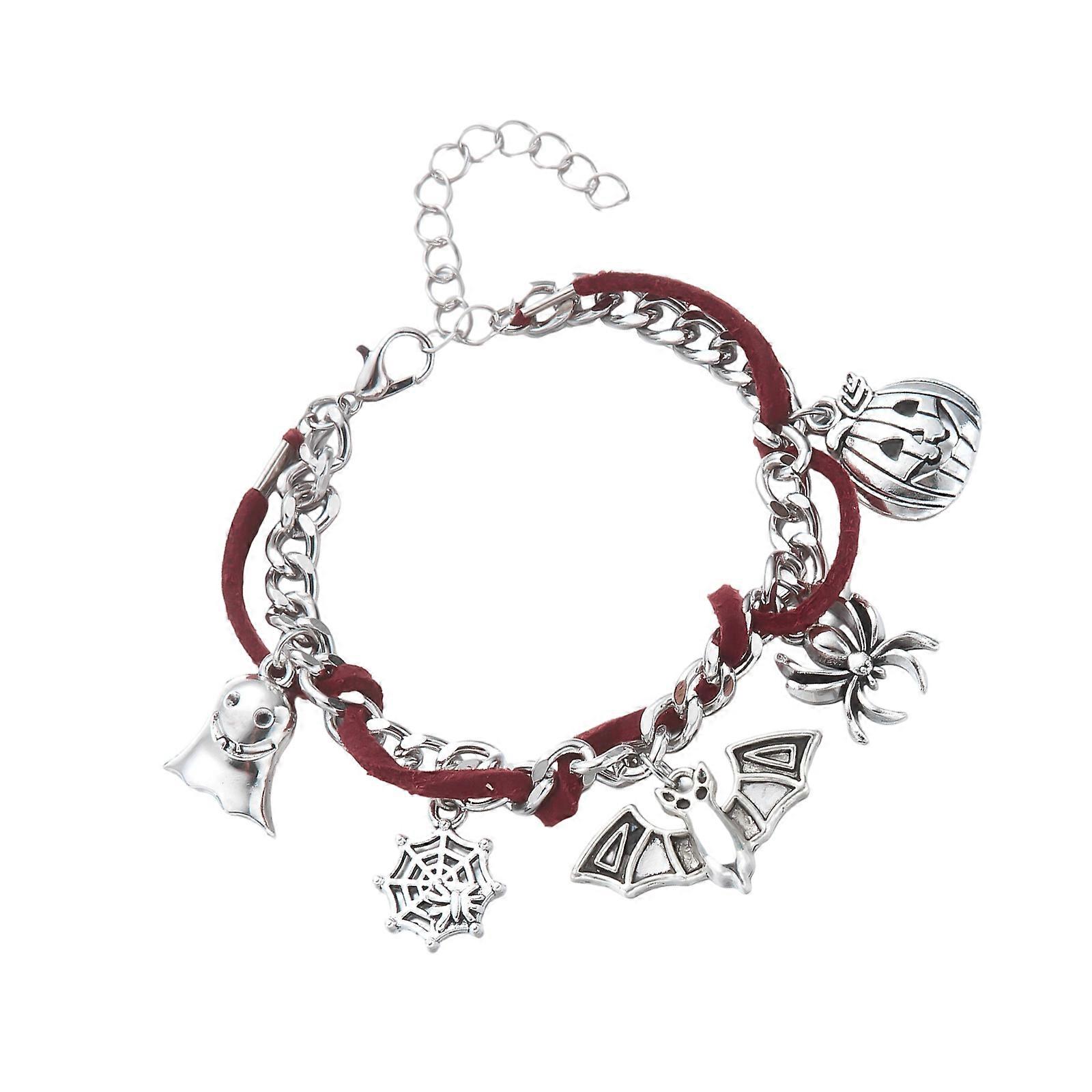 Festival Halloween Jewelry Gift Adjustable Alloy Necklace Pendant Bracelet with Bat Spiders Specter Pumpkin Pendant Design Multicolor