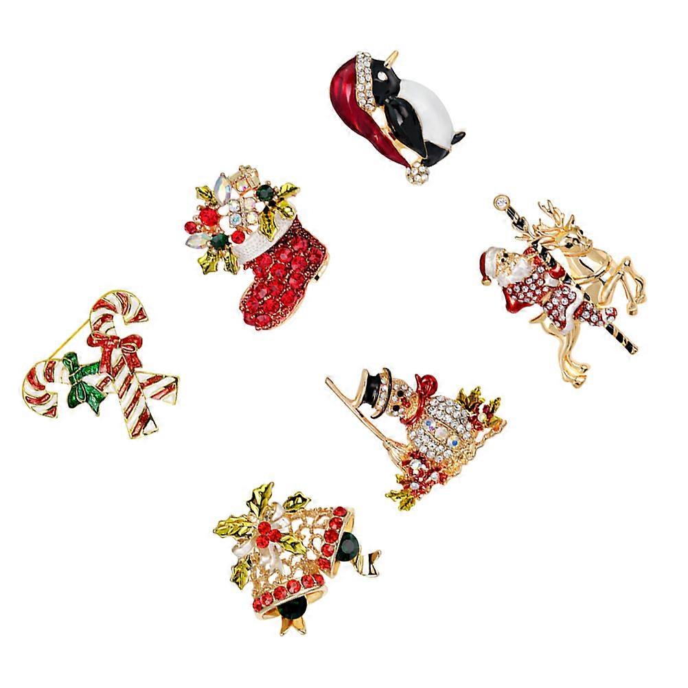 Festival Rhinestone Crystal Pins 6Pcs Brooches For Women Fashion Appearance Ideal For Christmas Party Clothing Decor