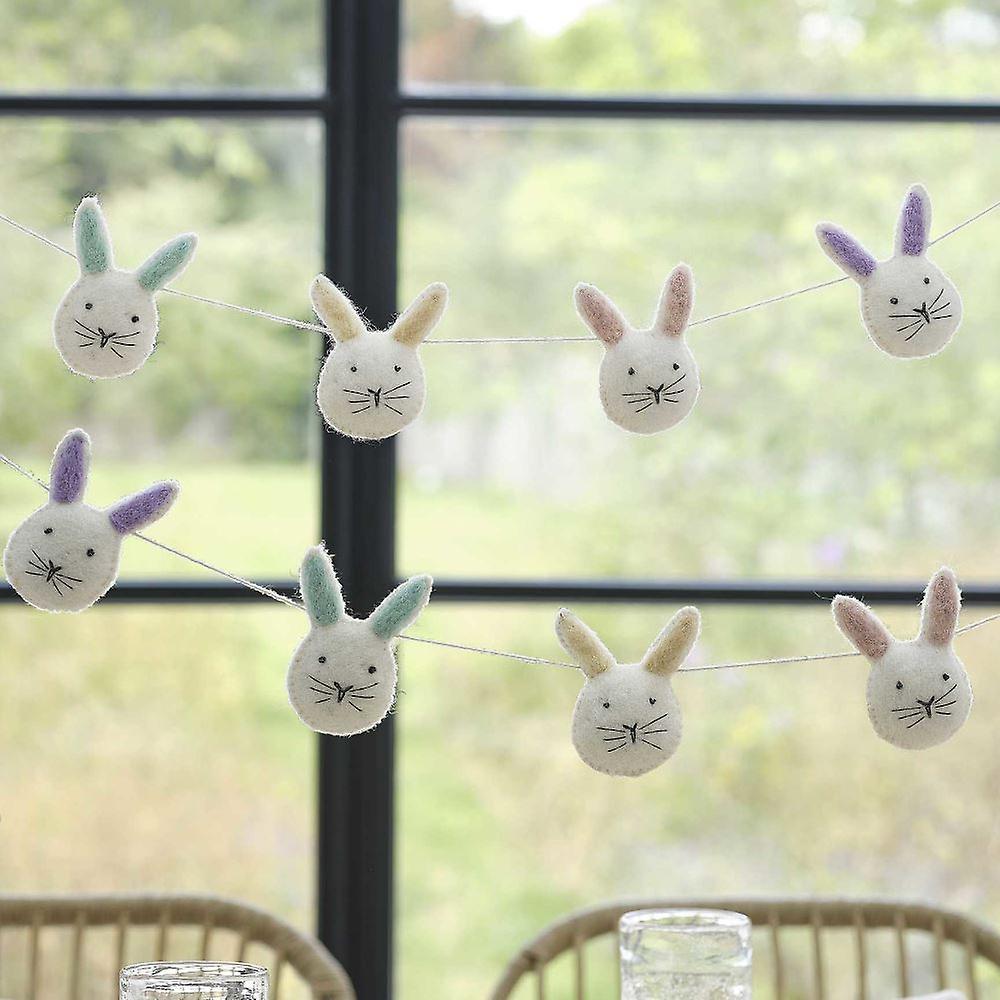 Felt Easter Bunny Bunting | Childrens Nursery Hanging Decoration Pastel 1.5m