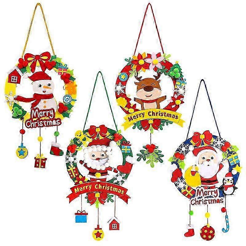 Felt Christmas Wreath Set of 4 Lighted Christmas Ornaments Kids Christmas Door Wreath DIY Hanging Wreath Christmas Decoration