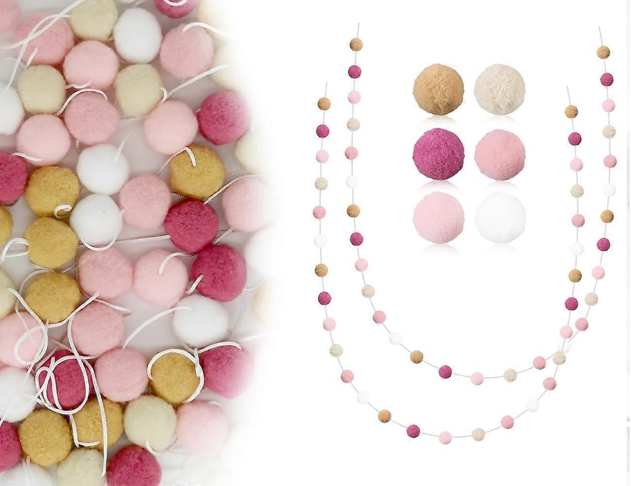 Pack of 2 Felt Ball Garlands, Pompom Garlands for Children's Room (Pink Rose)