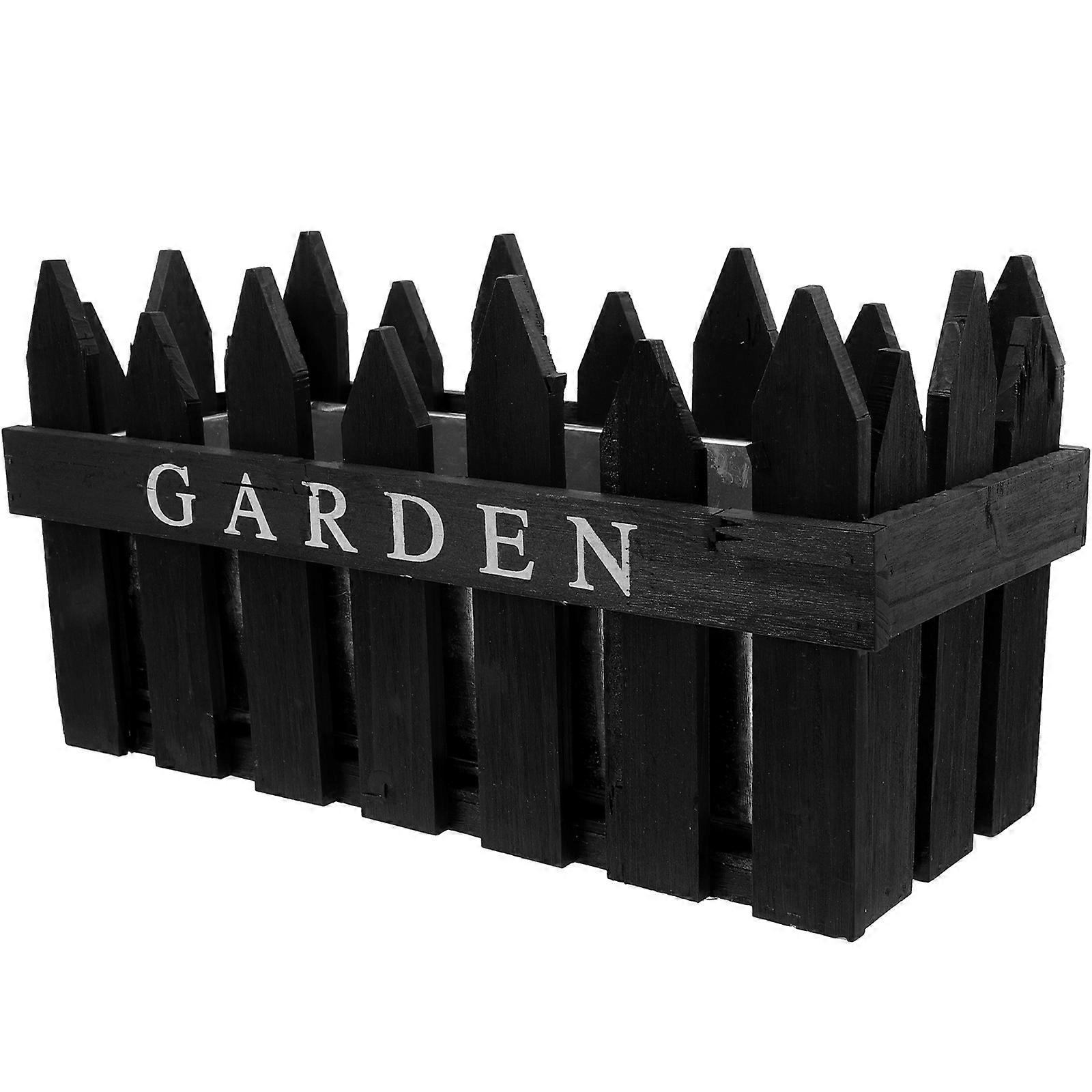 Fence Pot Wooden Flowerpot Pastoral Style Home Decoration Black 35x18cm Garden Ornament 1Pack