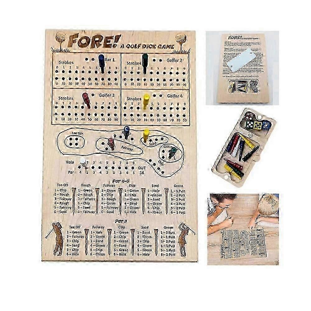 Fore! A Golf Dice Board Game,Wood Tabletop Golf Dice Game for Home, Travel, Camp