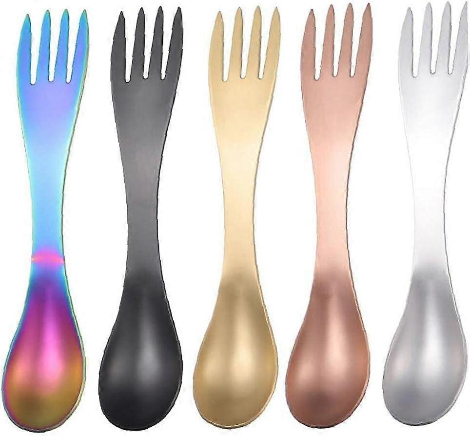 Fork Spoon in One Double Head Stainless Steel Spork Utensil Portable Flatware for Backpacking Hiking Outdoorssilver, gold, rose gold, black, dazzling
