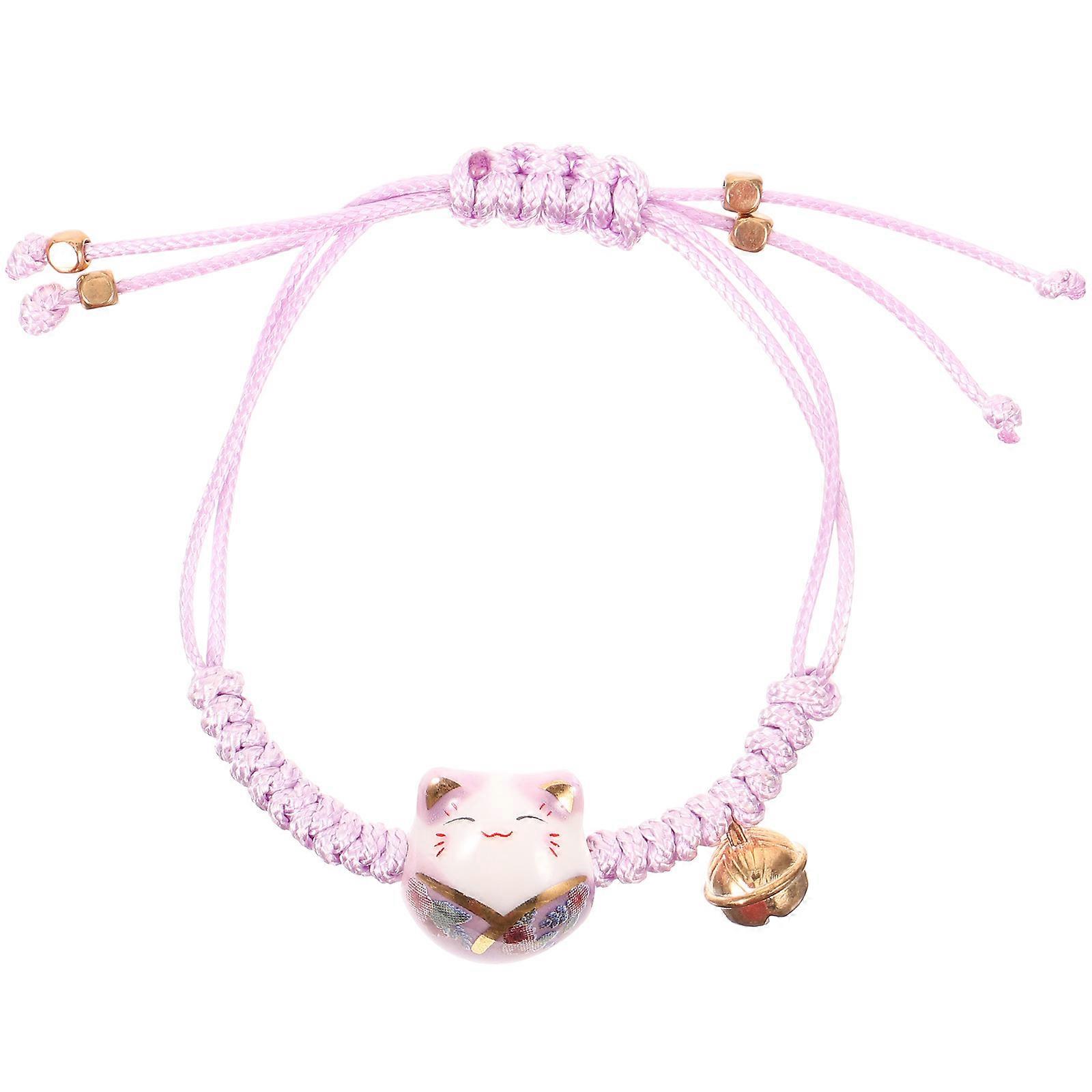 Fortune Cat Bracelet Ceramic Bead Handmade Weaving present Giving Rope Material 10.00X2.00X1.00CM Adjustable for Women 1Pcs