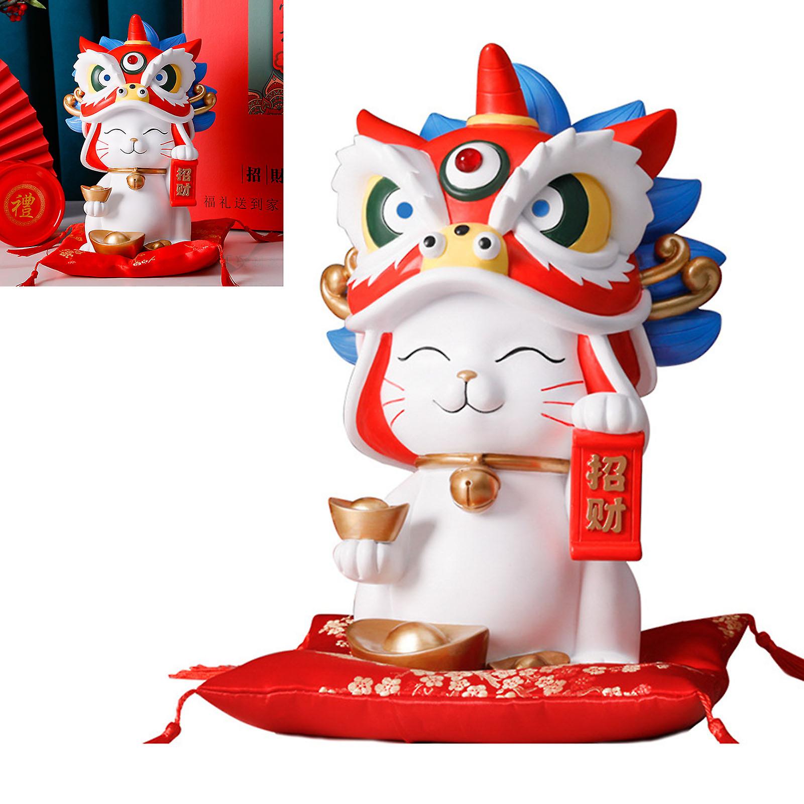 Fortune Cat Figure Ornament Fortune Cat Saving Pot Coin Bank Decoration for Shop Office White