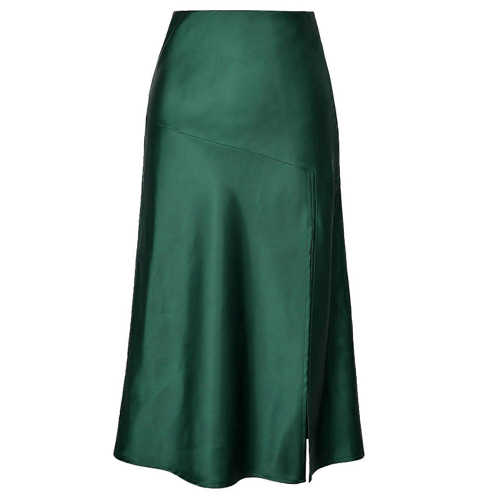 Formal Office Clothing High Split Midi Length Dresses Satin Silkys Long Skirts Bodycon Elegant Midi Skirt for Parties dark green XL