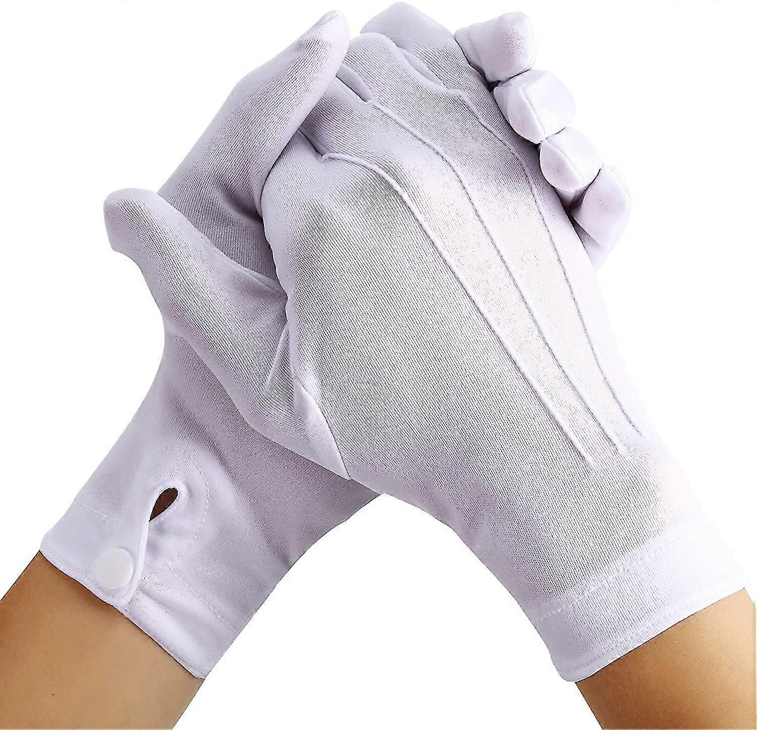White Stitched Cotton Gloves For Formal Tuxedo Jewelery Inspection, 2 Pairs (10