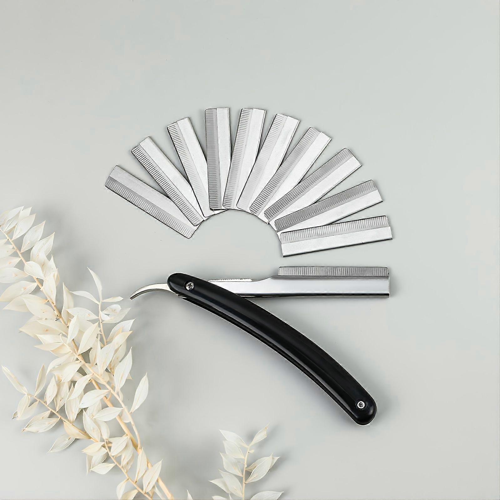 Folding Comb Men's Beard Styling Comb Stainless Steel Folding Beard Comb, 1Razor Holder + 10Replacement Blades (Black)
