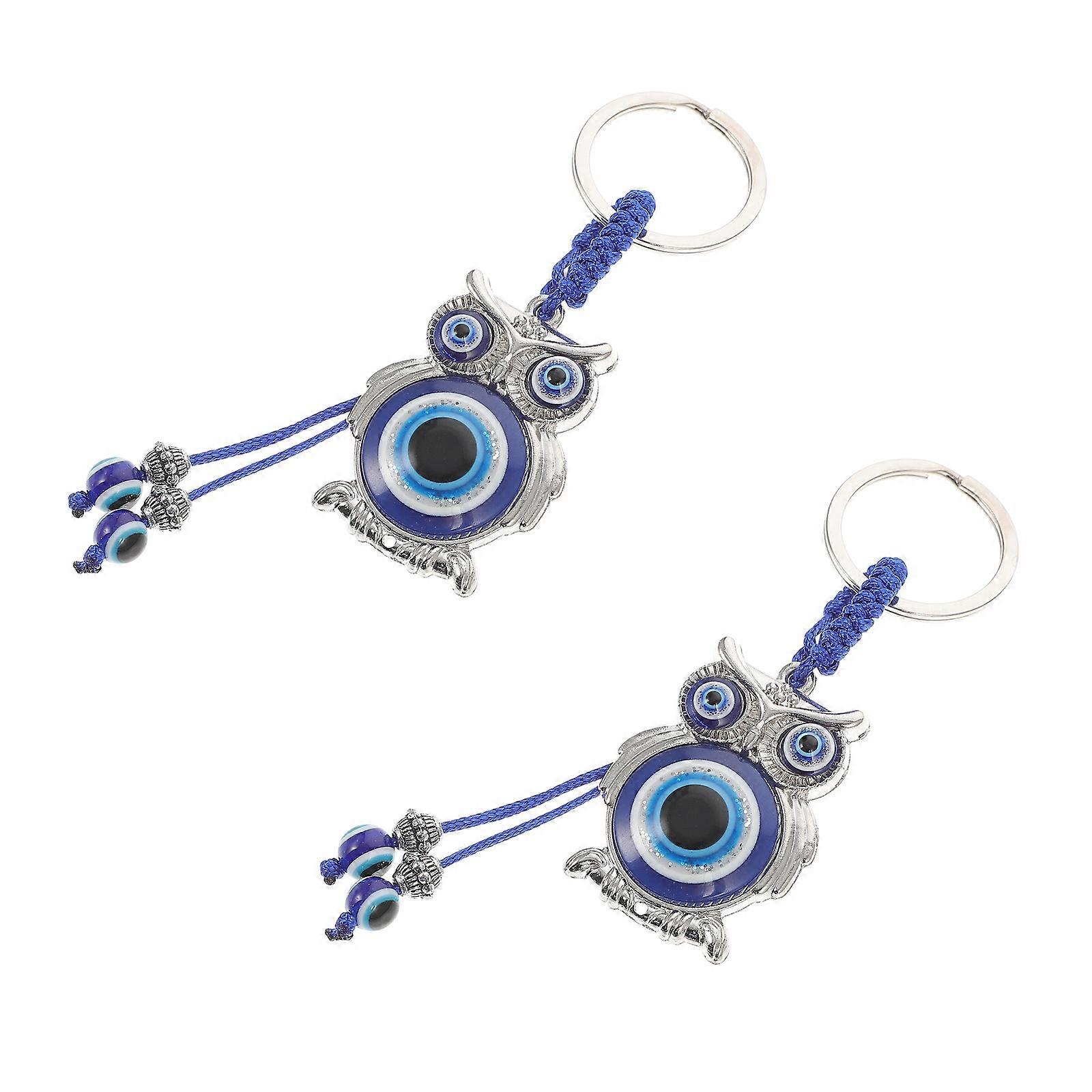 Owl Key Holder Evil Eye Keychain Car Hanging Ornament Blue Zinc Alloy Amulet 15X3.3X1CM 2Pcs