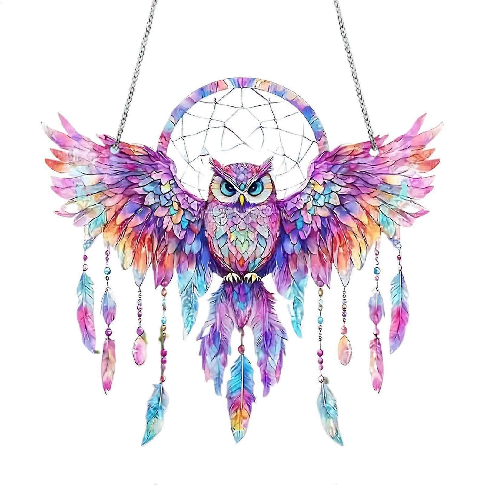 Owl Sun Catcher, 2D Stained Acrylic, 20 x 17 cm, Colourful Wings Window Decor