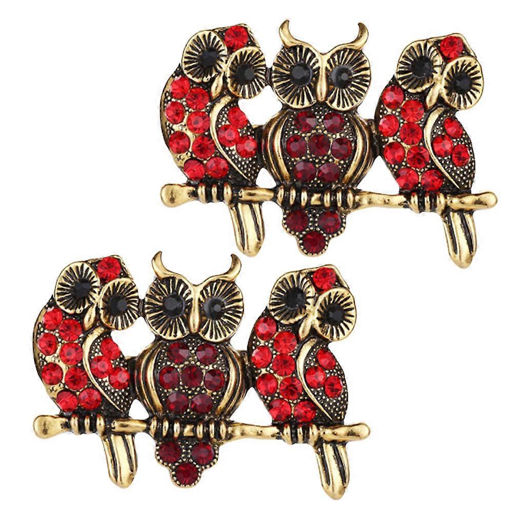 Owl Brooch Elegant Decoration Accessory for Outfit Assorted Color Rhinestone Crystal 2Pcs