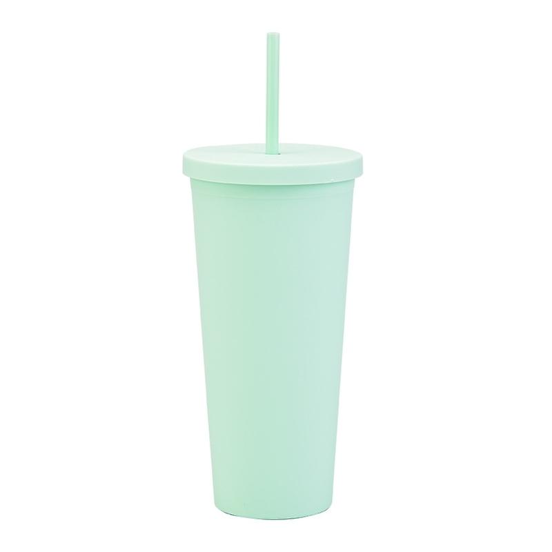 Cups with Lids and Straws, (Light Green)Plastic Mug, Reusable, Travel Cup, Coffee Cup, 700ml, Cold D
