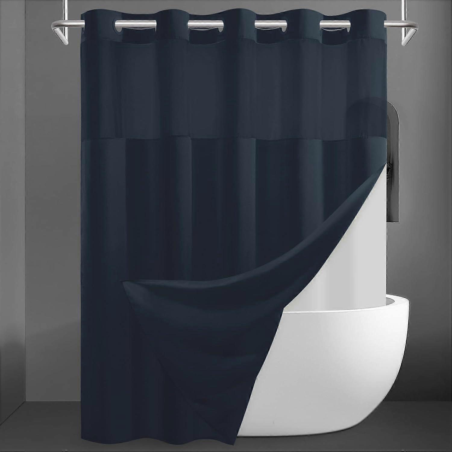 No Hook Slub Textured Shower Curtain with Snap in Liner Navy Fabric Outer