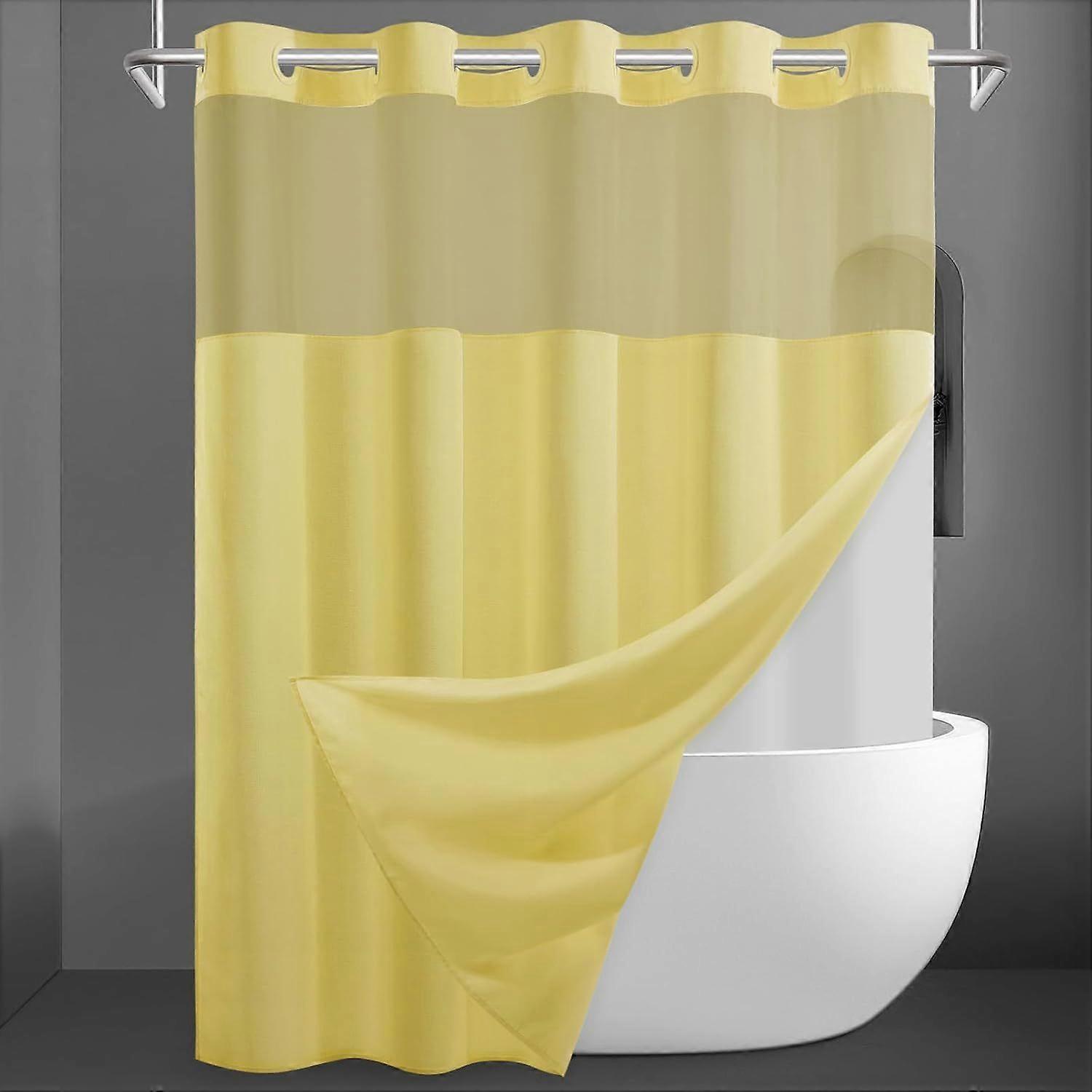 No Hook Slub Textured Shower Curtain with Snap in Liner Yellow Fabric Outer