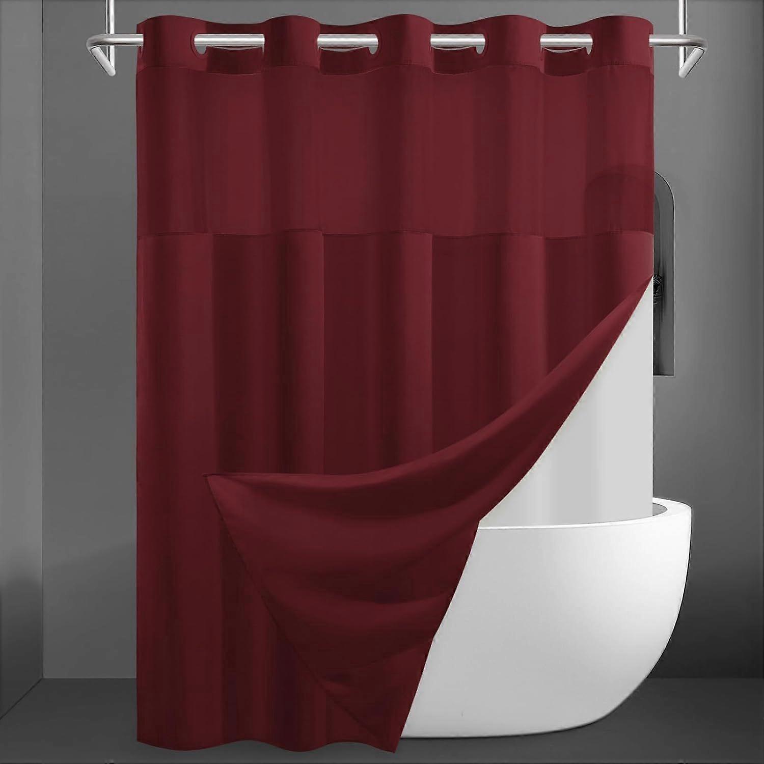 No Hook Slub Textured Shower Curtain with Snap in Liner Burgundy Fabric Outer