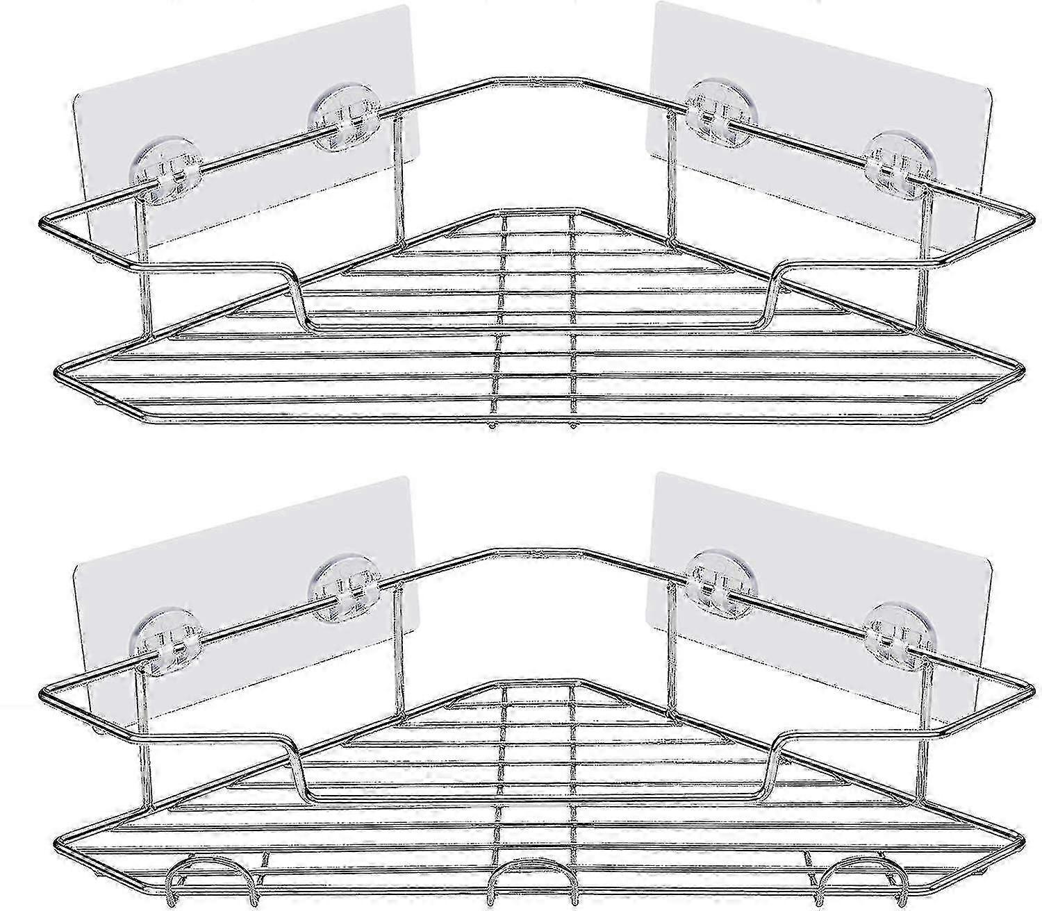 Stainless Steel Shower Caddy with Hooks, No Drill Bathroom Shelf, 2-Pack Chrome Organizer