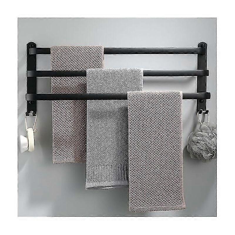 Tier Aluminum Wall Mounted Towel Rack With Hooks 60cm Waterproof Black Towel Rack Compatible Bathroom Kitchen Bathroom