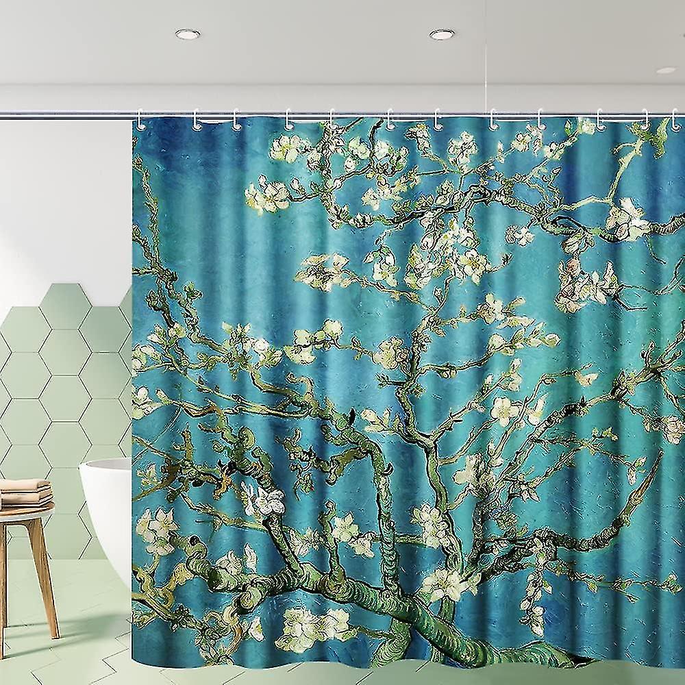 Bathroom Shower Curtain Set With Hooks,almond Blossom By Van Gogh,home Art Paintings Pictures For Bathroom