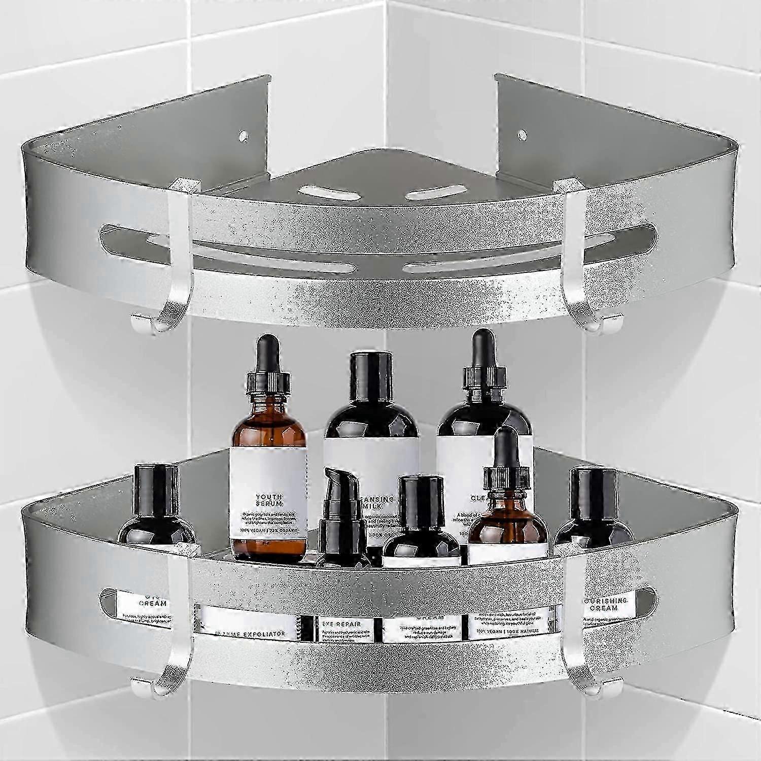 Adhesive Shower Shelf with Hooks Wall Mounted Bathroom Organizer No Drill Required 2 Pack