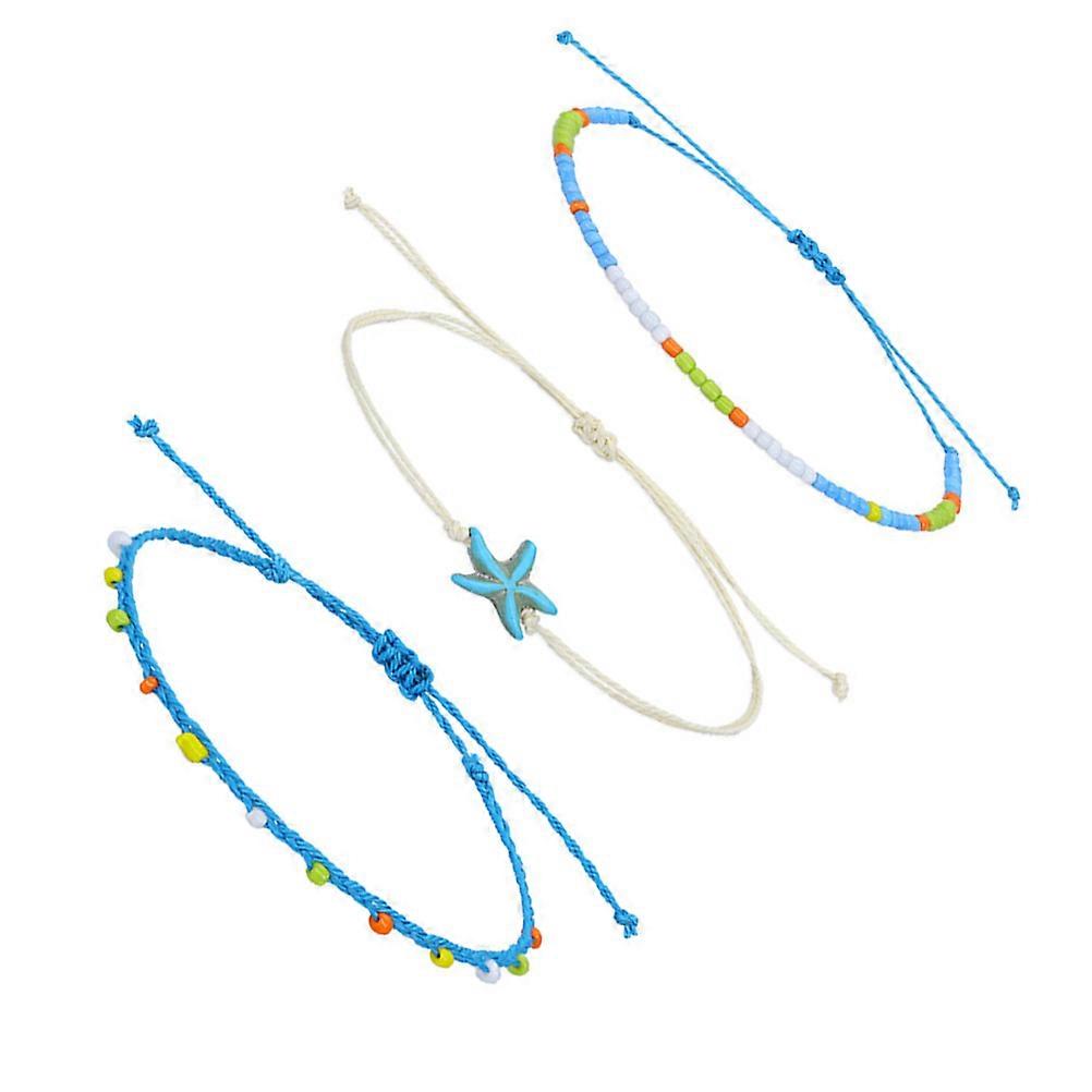 Foot Chain Ankle Bracelet Set 3Pcs Woven Adjustable Size Shape Beach Accessories for Women