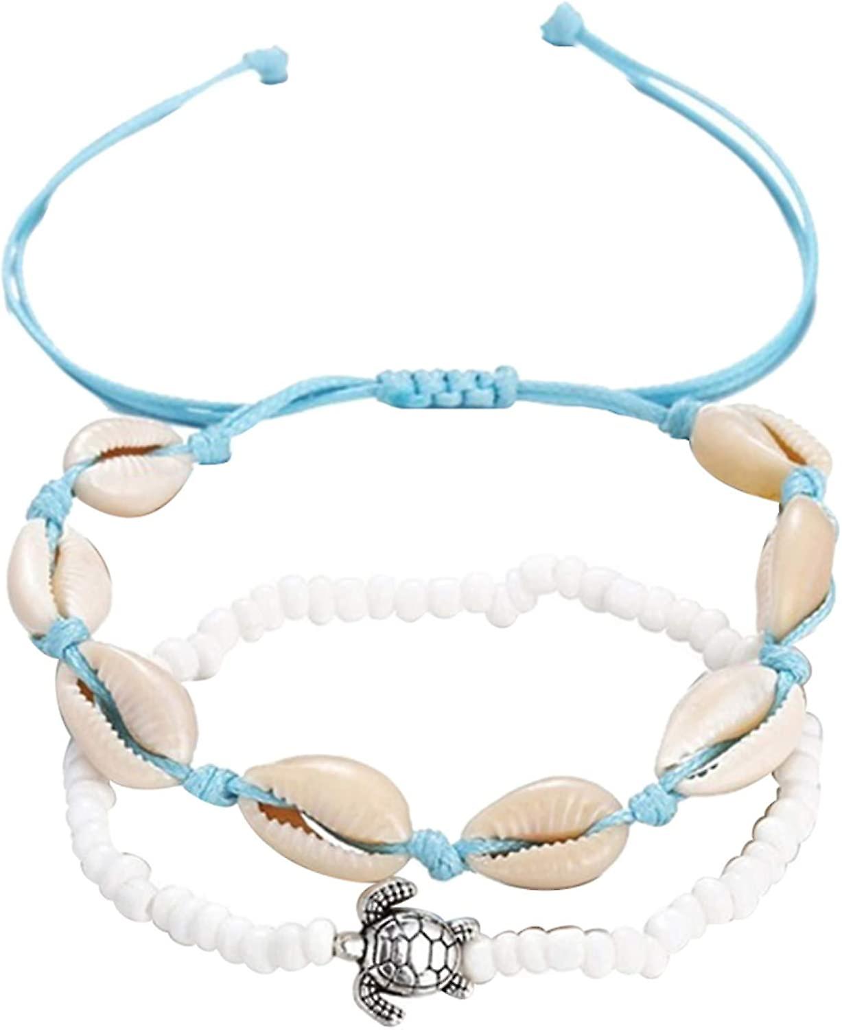 Foot Chain Anklet, 2Pcs Turtle Shell Charm Beaded Anklets Women Ankle Foot Bracelet Sandal Jewelry