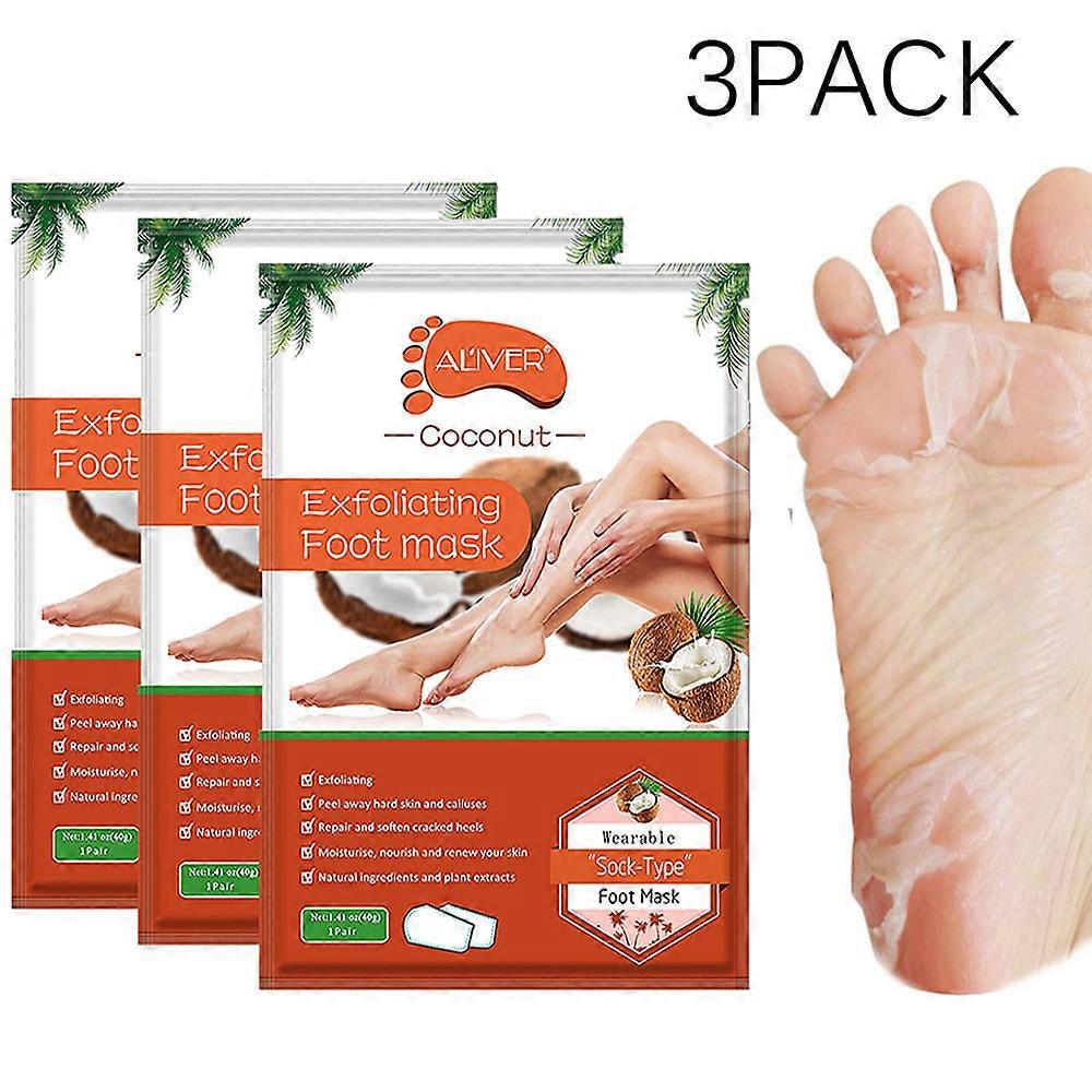 Foot Peel Mask 3 Pack, Coconut Exfoliating Foot Masks, Natural Exfoliator for Dry Dead Skin, Callus, Repair Rough Heels for Men Women